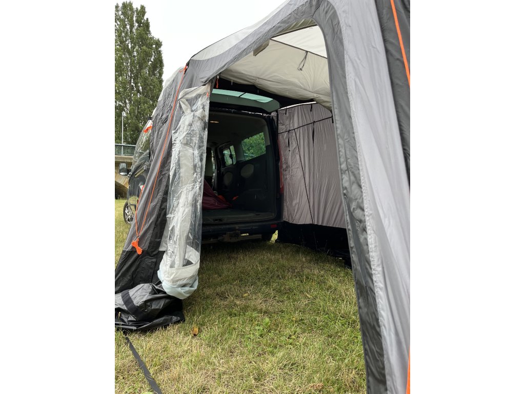 Součástí konstrukce je 1,5metrový tunel s výškovým rozsahem 160–210 cm, který zajišťuje flexibilní napojení na vozidlo. Na boku se nachází další vstup pro snadný přístup zvenčí. Stan je vyroben z kvalitního materiálu Climatech 190T, který poskytuje ochranu proti větru i dešti.