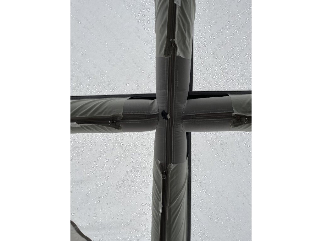 Stan umožňuje rychlé a snadné sestavení díky jednomu nafukovacímu ventilu. Prostorná obytná část o rozměrech 250 × 250 cm poskytuje dostatek místa pro odpočinek, stolování i přespání. Přední část je vybavena sítí proti hmyzu, spolu se slídovými okny a vnitřní clonou pro větší soukromí.