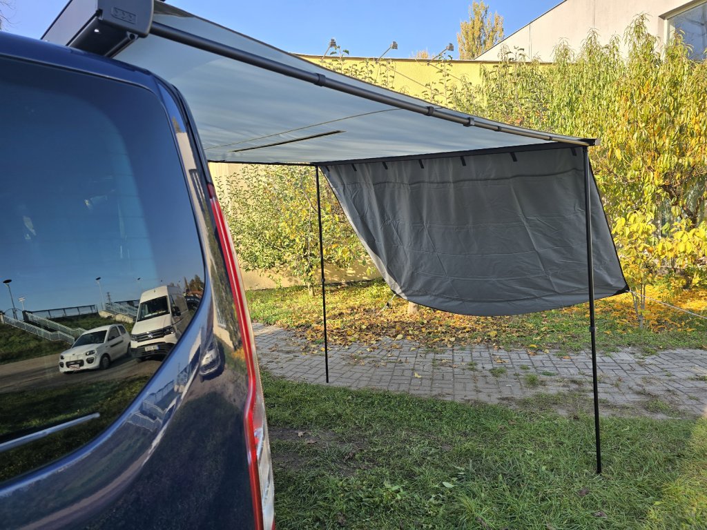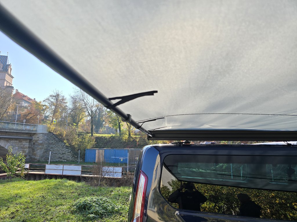 Dve teleskopické nohy s nastaviteľnou dĺžkou 123 – 215 cm. Markíza sa upevňuje na všetky typy strešných nosičov (priečniky, hagusy,…). Na zadnej strane markízy sú dve drážky pre skrutky na uchytenie k L držiaku, a to buď pomocou T skrutiek, alebo plochej ocele.