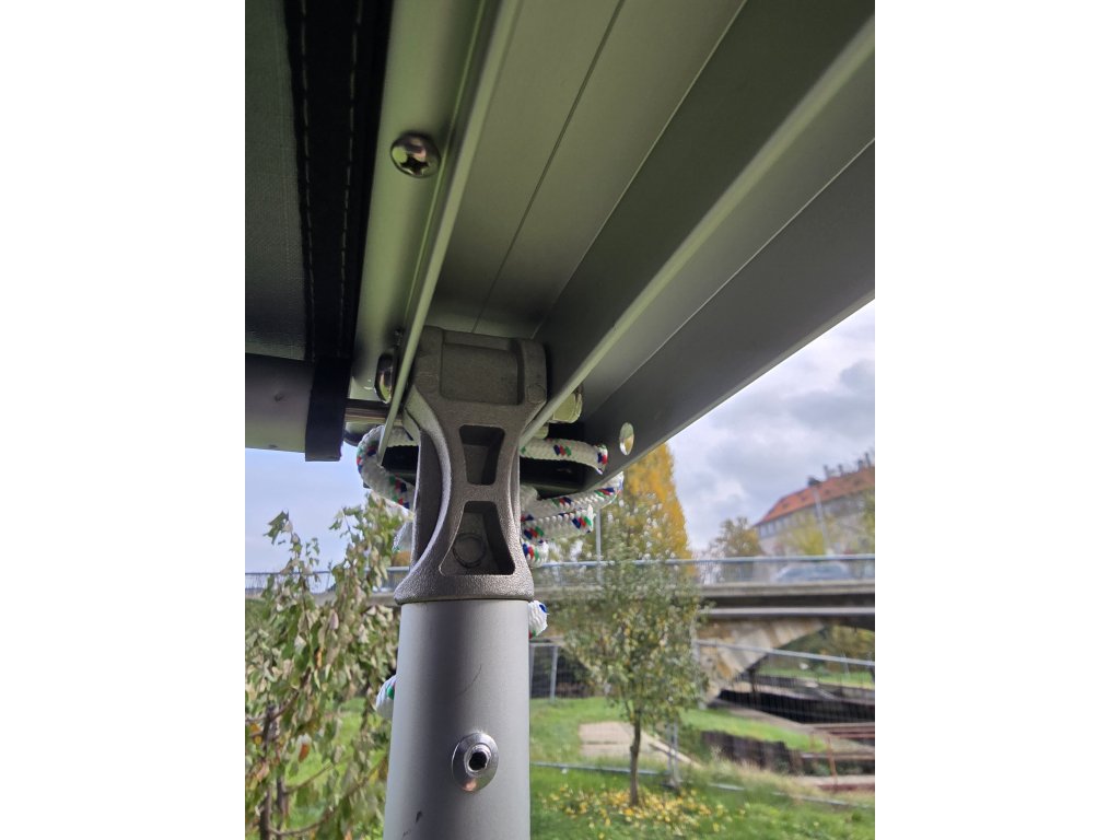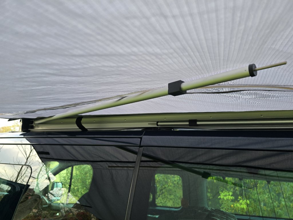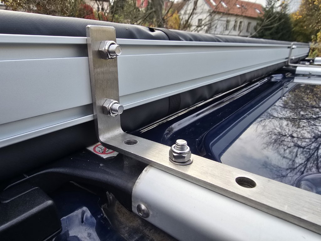 Ideálny prístrešok na rozloženie kuchynky alebo pohodlné posedenie. Markízy sa upevňujú na všetky typy strešných nosičov (priečniky, hagusy a pod.). Markízy radu KL sú vyrobené z veľmi kvalitných materiálov – zadná hliníková lišta s dvoma drážkami umožňuje jednoduché upevnenie k držiaku, ktorý je samozrejme súčasťou balenia. Kvalitná nepremokavá plachta s vodným stĺpcom 8000 mm vás ochráni nielen pred slnkom, ale aj pred silným dažďom. Odporúčame ukotvenie rohov proti vetru, kotviace prvky sú taktiež súčasťou balenia. Upozorňujeme, že markízy všetkých značiek je vhodné pri silnom vetre radšej zbaliť, aby sa predišlo poškodeniu.