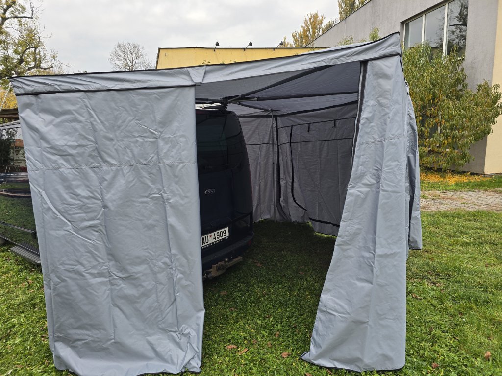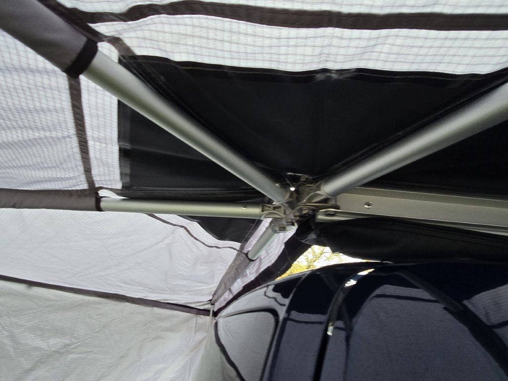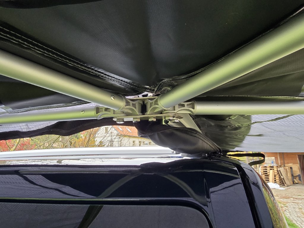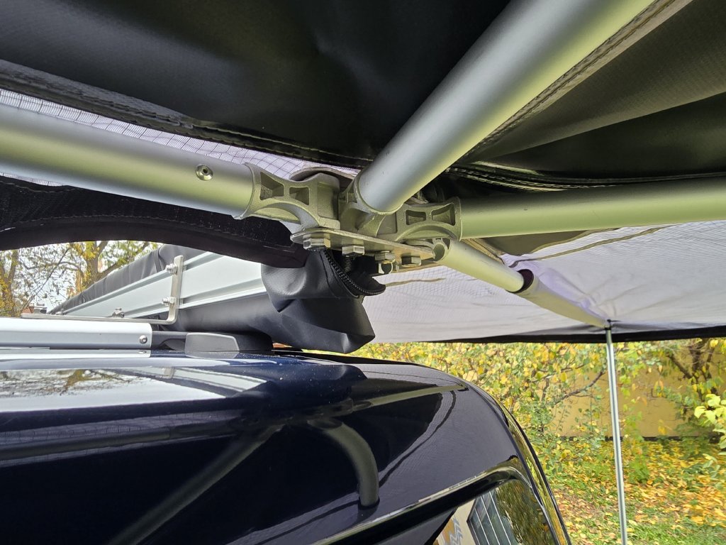 Možno ju pripevniť na akékoľvek auto so strešným nosičom – pomocou priečnikov, buď T-skrutkami, alebo plochou oceľou. Ako pri každej markíze, ani táto nie je určená do silného vetra.