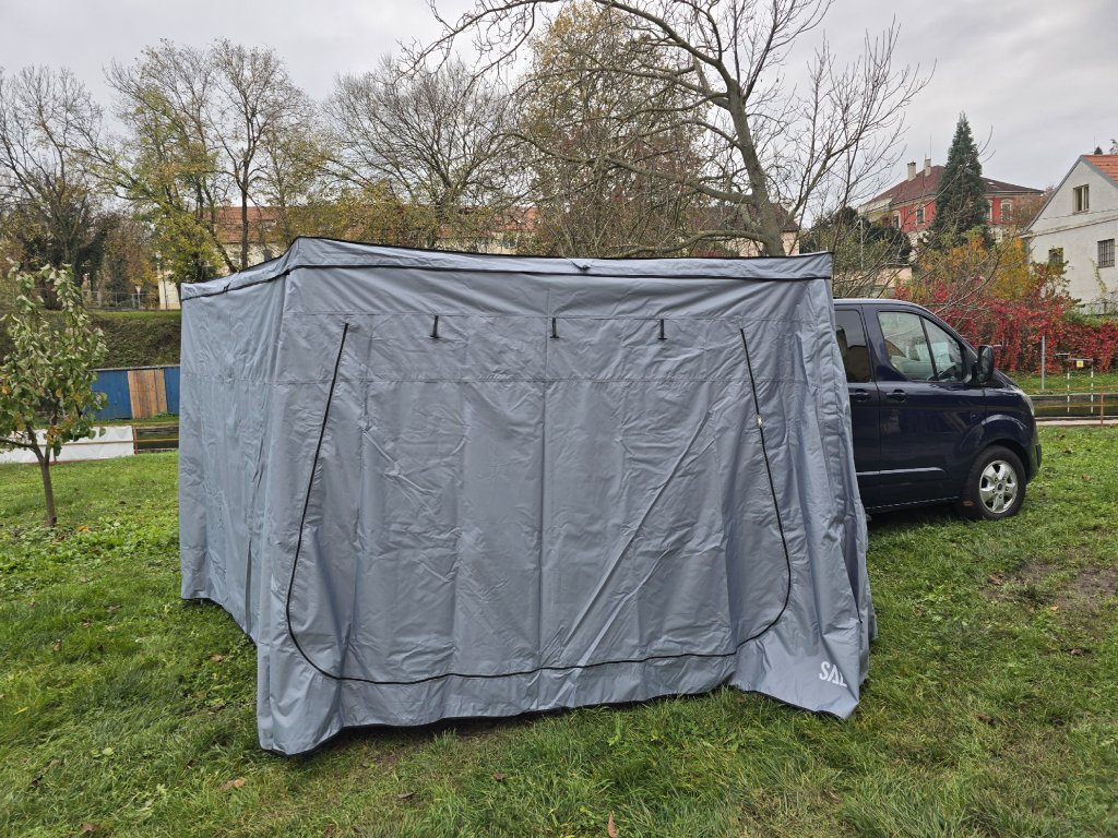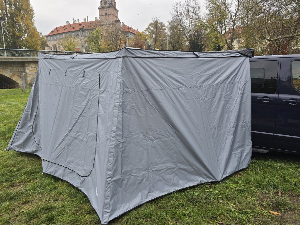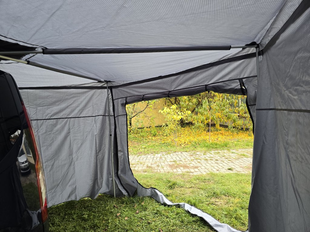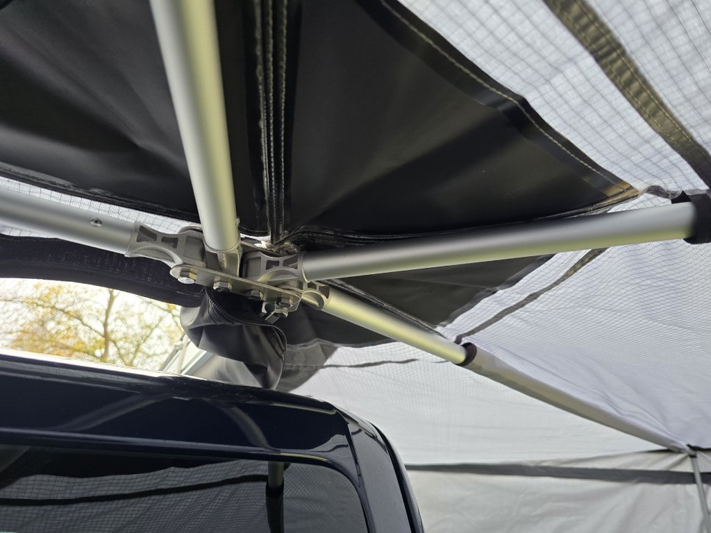 Možno ju pripevniť na akékoľvek auto so strešným nosičom – pomocou priečnikov, buď T-skrutkami, alebo plochou oceľou. Ako pri každej markíze, ani táto nie je určená do silného vetra.